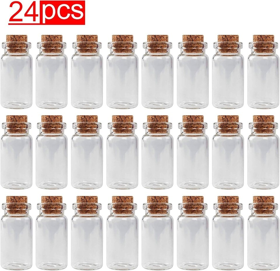 Mini Clear Glass Jars Bottles Cork Stoppers 1-1/2" Tall X 3/4 Inches 24 Pack)
