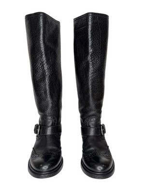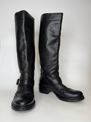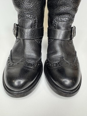 Primary image for Miu Miu Size 36,5 Riding Boots Black Pebbled Leather