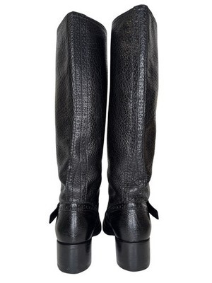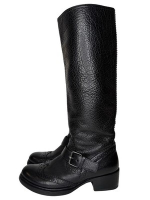 Miu Miu Size 36,5 Riding Boots Black Pebbled Leather