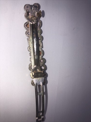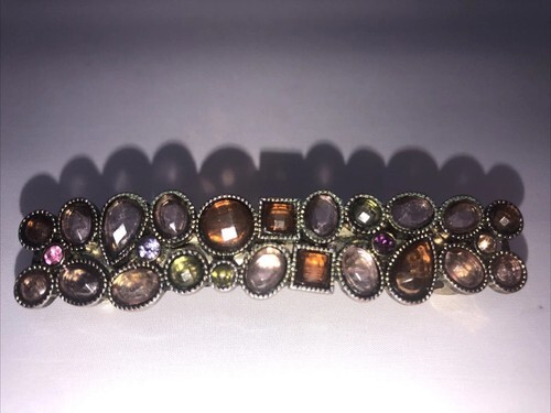 MULTI COLOR BROWN LUCITE JEWELED METAL HAIR BARRETTE- All Stones Present