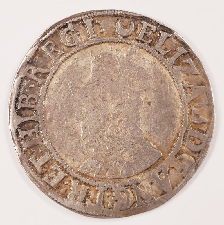 - ND (1587-89) England Elizabeth I Shilling Silver Coin S-2577 Crescent Mint Mark