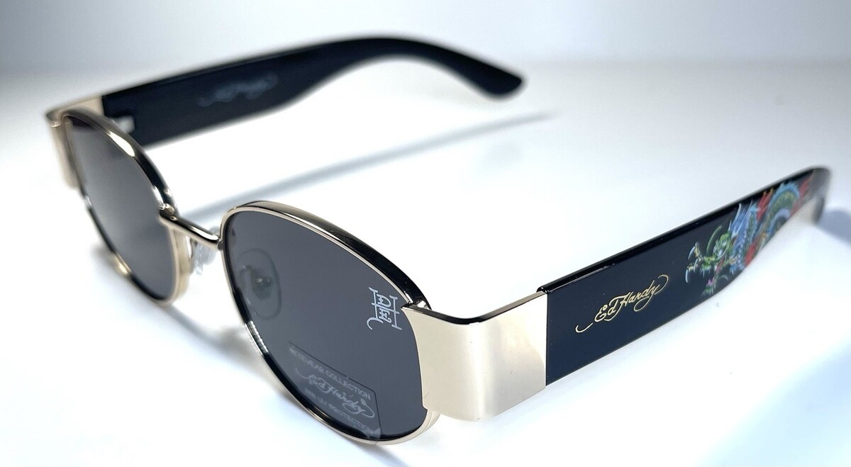 - NWT ED HARDY Black Gold Multicolor Classic Dragon Sunglasses + Case