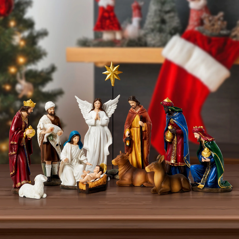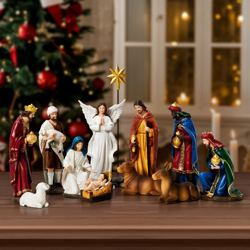 The 13 indoor nativity set are made of resin material, handcrafted and exquisitely designed.