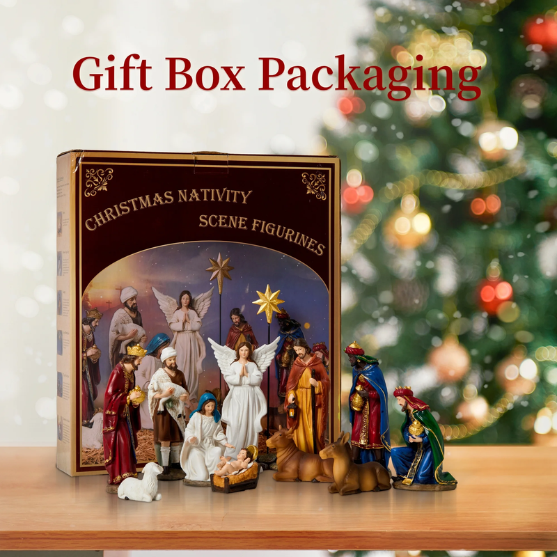 ??Package?:High density expandable polystyrene, each figurine can be well protected from damage. Colored outer box packaging, the outer box includes the display of the product and the story description of each character. A nativity resin set would be the perfect gift for Christmas and holiday!
