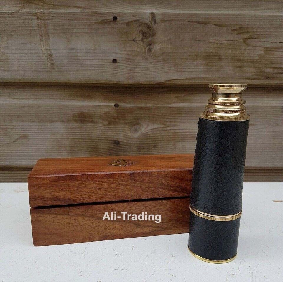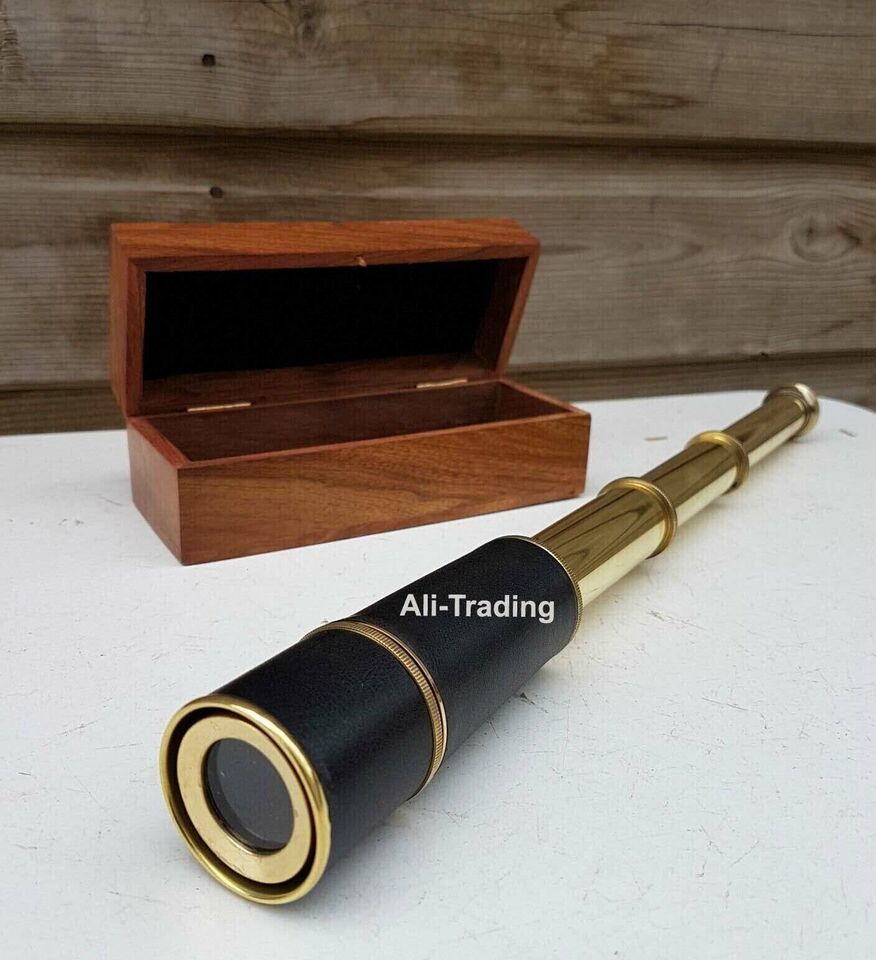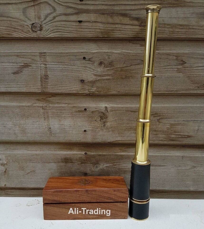 - Nautical Vintage Replica Marine Solid Brass Telescope with Wooden Box Free