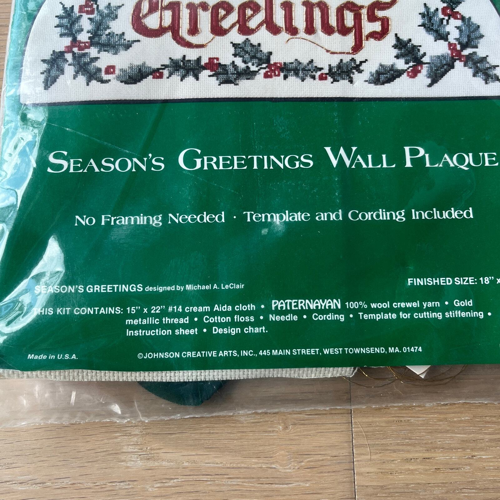 Needle Treasures Counted Cross Stitch Seasons Greetings Wall Plaque New in manufacturer sealed packaging. Finished it measures 1810 No. 02804