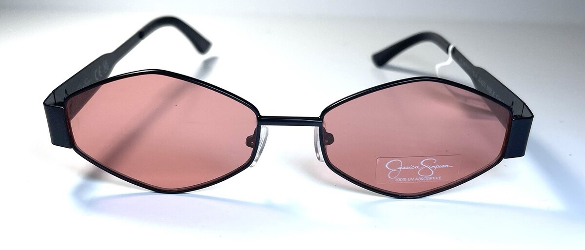 - NEW JESSICA SIMPSON Black Pink Lens Metal J6420 Classic Sunglasses + Case