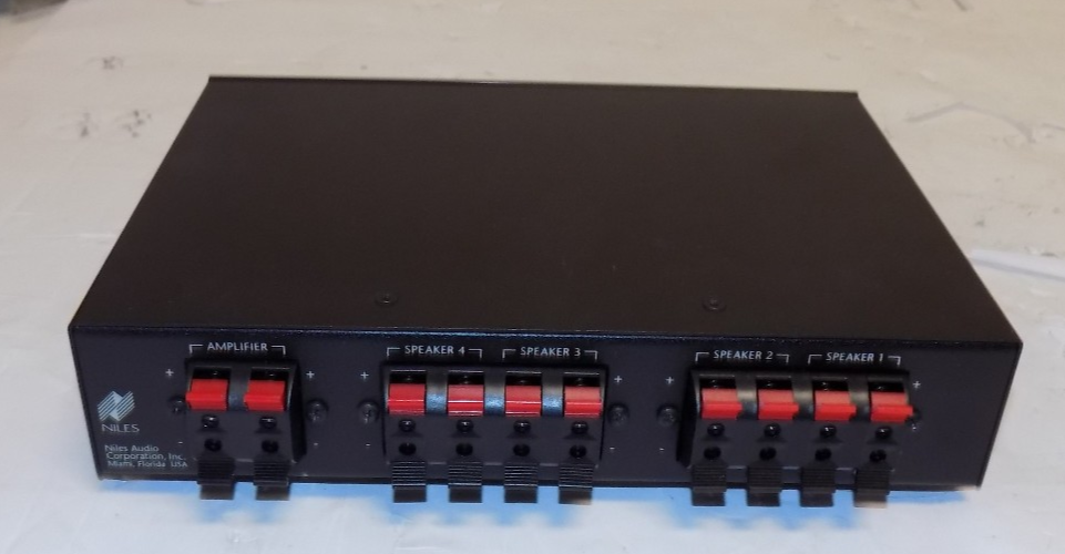 This Niles SPS-4 Speaker Selection System is in good condition. Minor wear on the case. Measures approximately 8 1/2" W x 6 1/2" D x 2" H