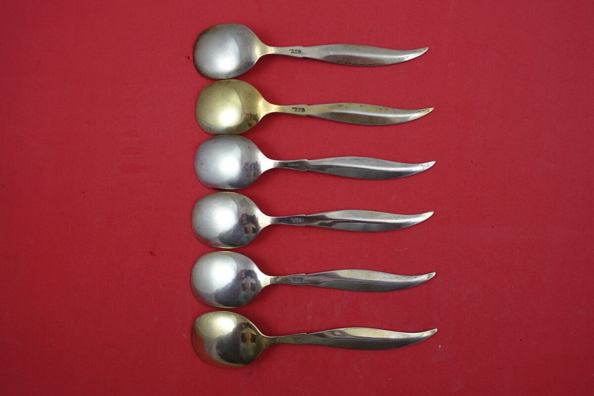 - Norwegian Sterling Silver Ice Cream Spoon set of 6 vermeil enameled feathered 5"