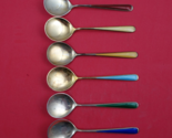 Norwegian sterling silver Ice Cream Spoon, set of 6, vermeil enameled in red, gold, yellow, turquoise, green and blue 4 3/8" by N.M Thune-Oslow. It is not monogrammed and is in excellent condition.