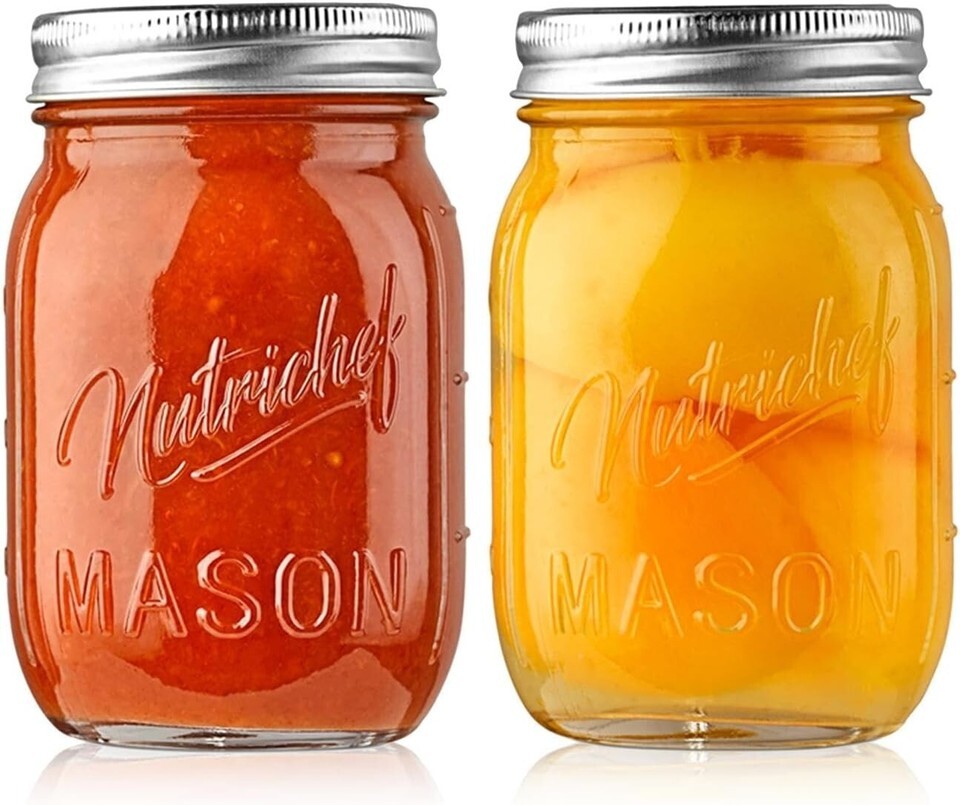 NutriChef 2 Glass Clear Mason Jars 16 oz Stainless Steel 3.2"L x 2.75"W x 5"H