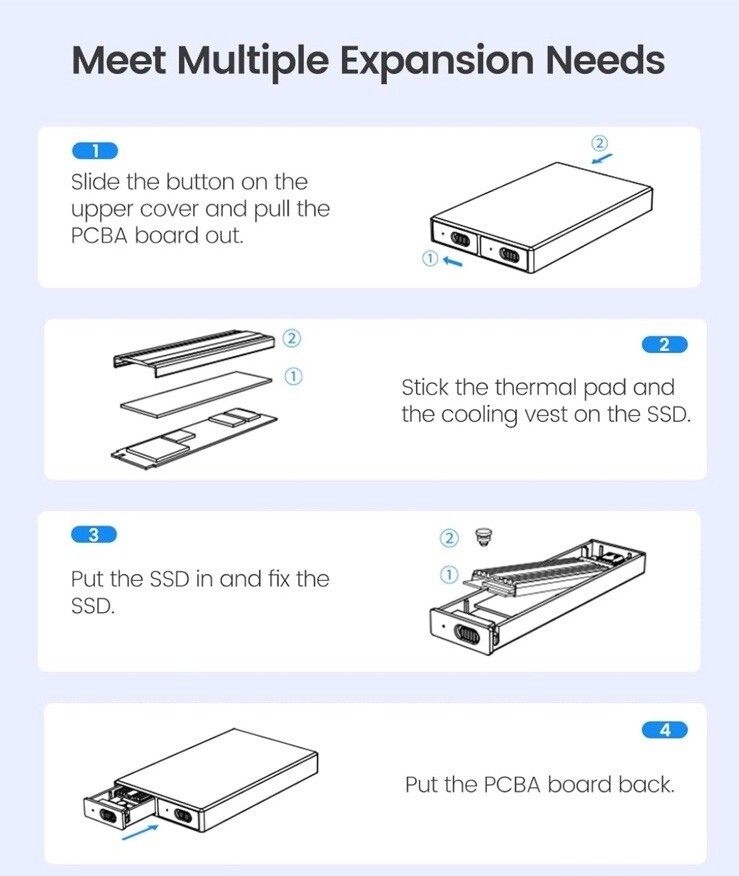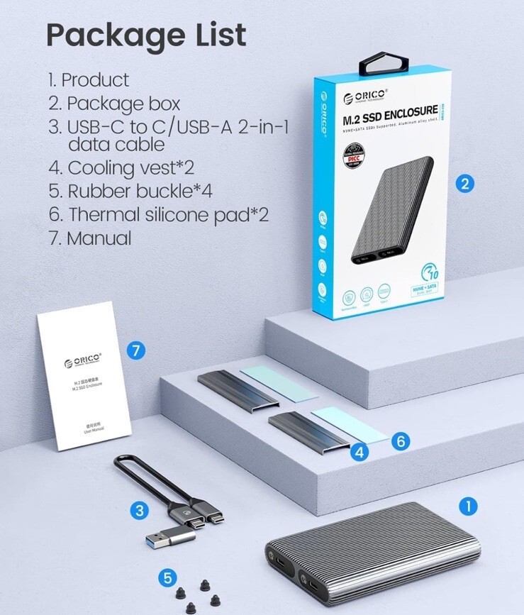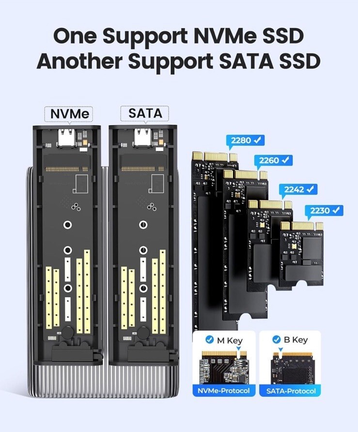 - ORICO Dual M.2 NVMe SSD Aluminum USB3.2 Gen2 10Gbps, M.2 Type-C Docking