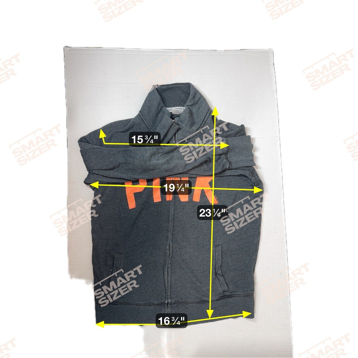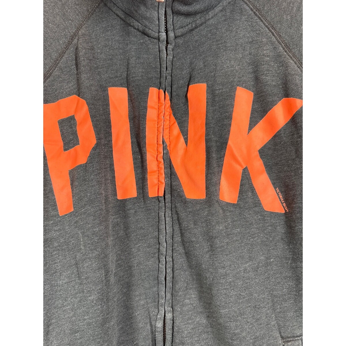 - PINK Victoria's Secret Sweatshirt Full Zip Gray Coral Spellout Mock Neck Medium