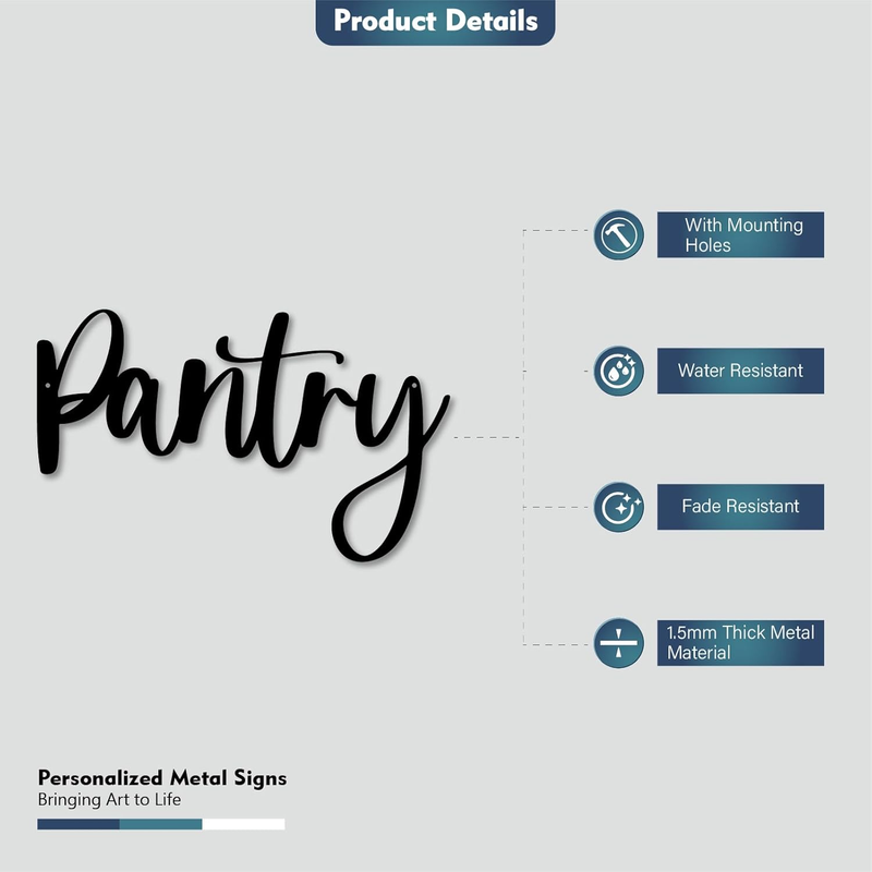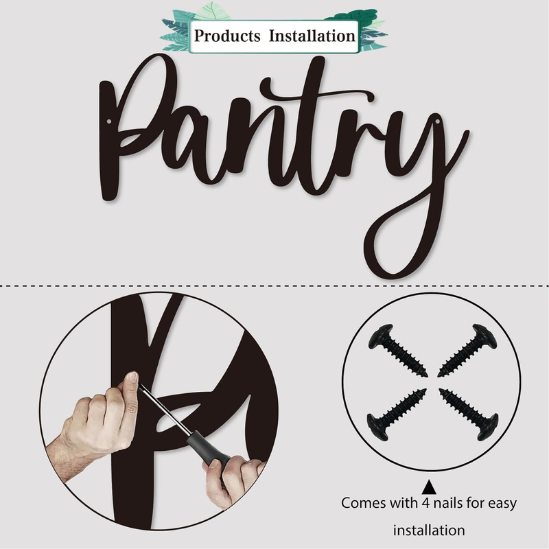Pantry Word Sign Metal Wall Decor - 12"X7.4" Pantry Decor for Home Kitchen Resta