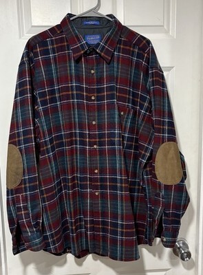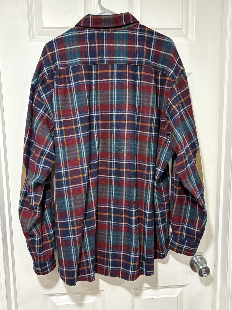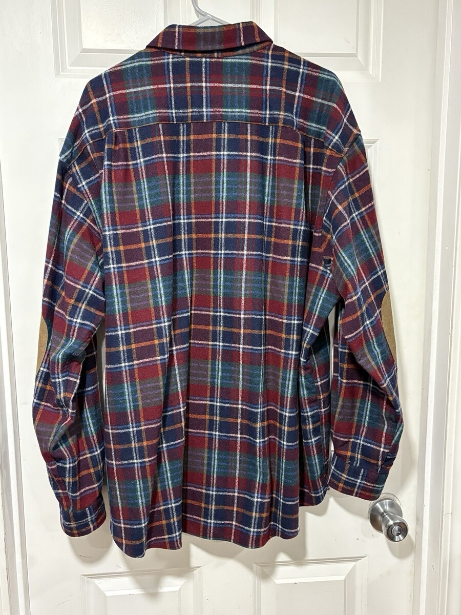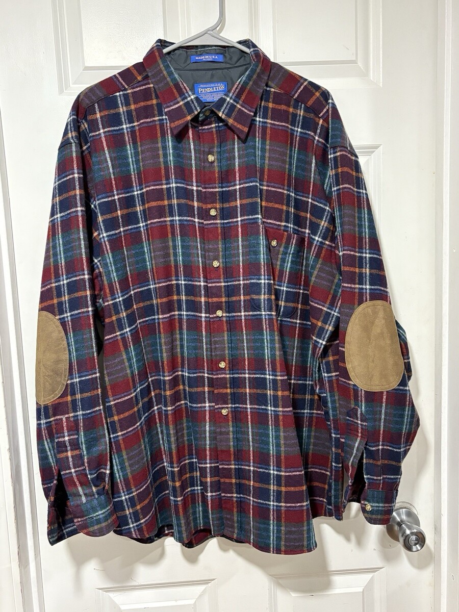 - Pendleton Mens XXL %100 Wool Leather Elbow Patch Flannel Button Up Shirt