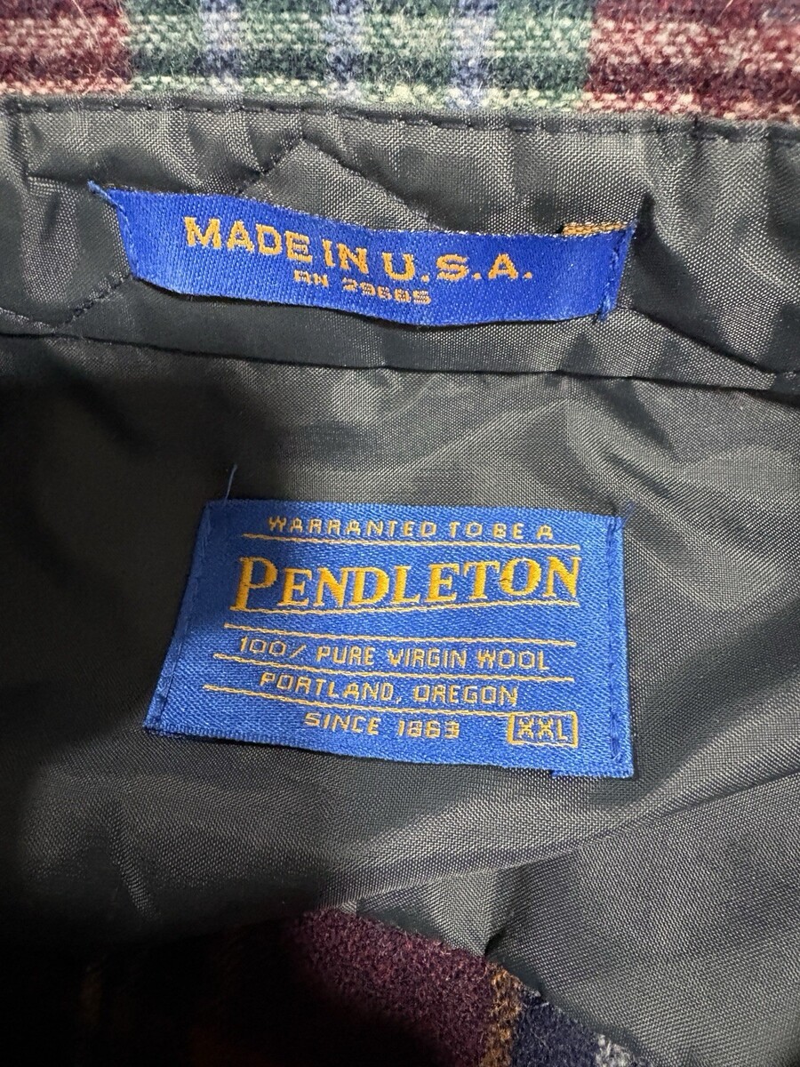 Pendleton Mens XXL %100 Wool Leather Elbow Patch Flannel Button Up Shirt