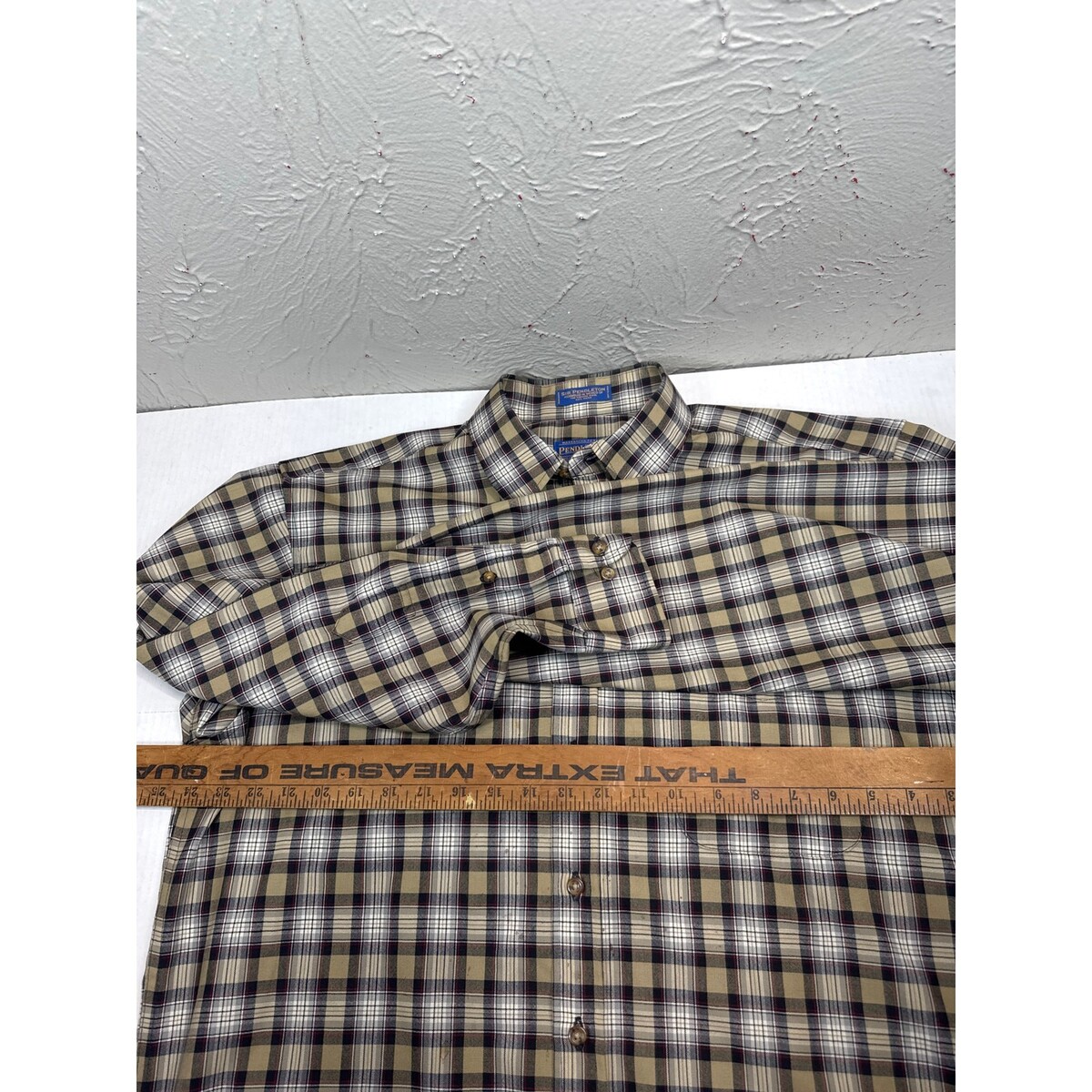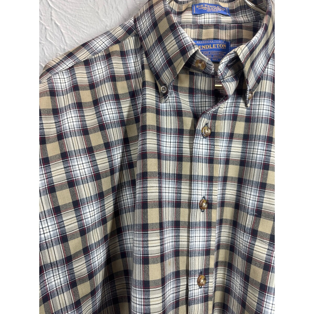 - Pendleton Virgin Wool Stewart Camel Tartan Long Sleeve Button Shirt Large Long