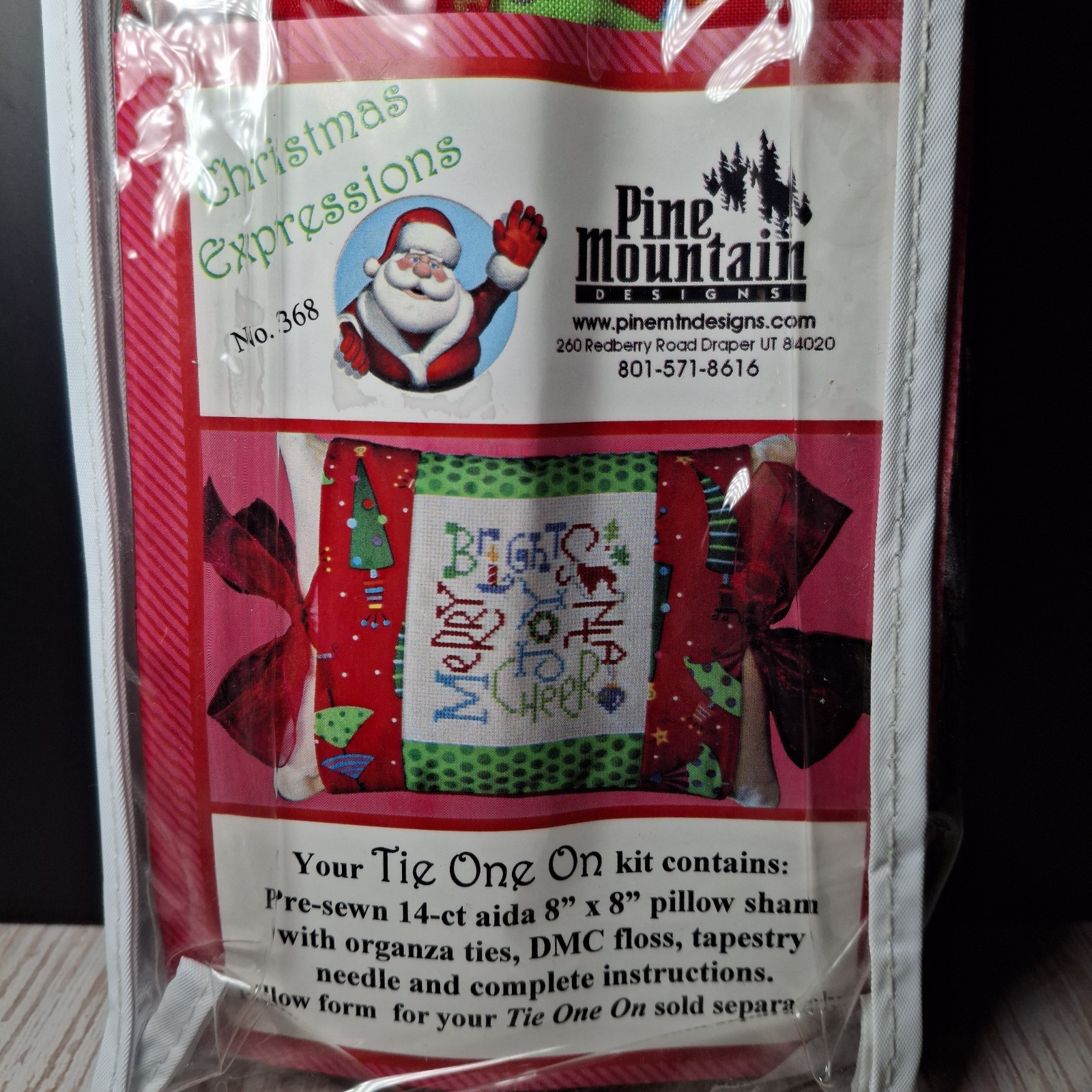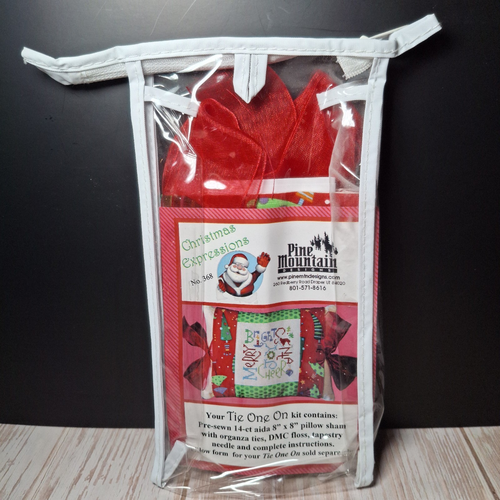 Pine Mountain Designs Tie One On CHRISTMAS EXPRESSIONS #368 8" 8" pillow Sham Cross Stitch Kit. Pillow form sold separately.