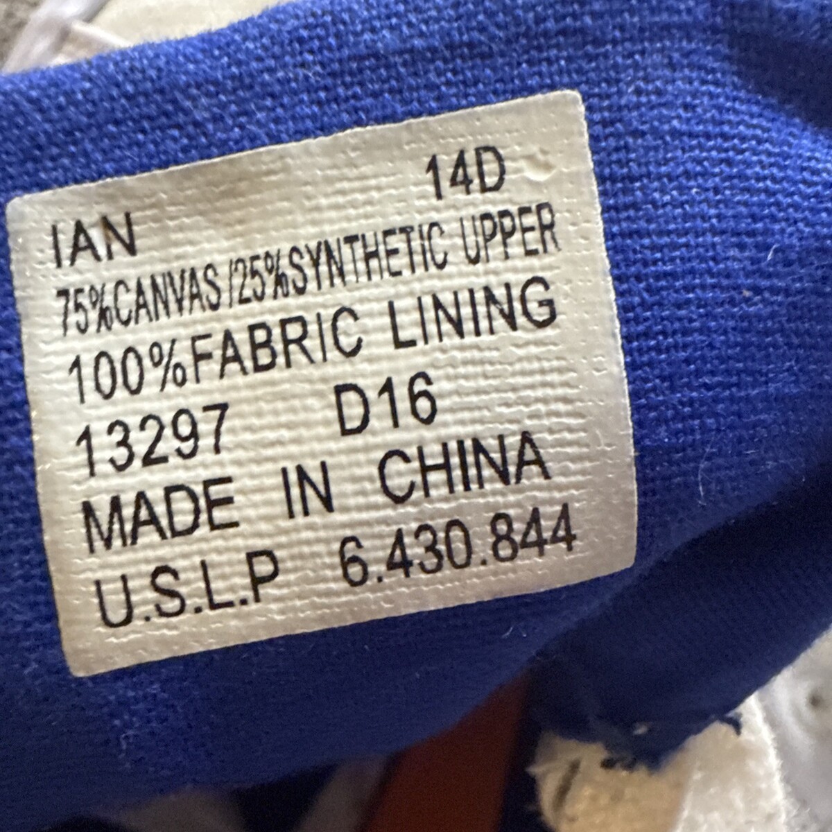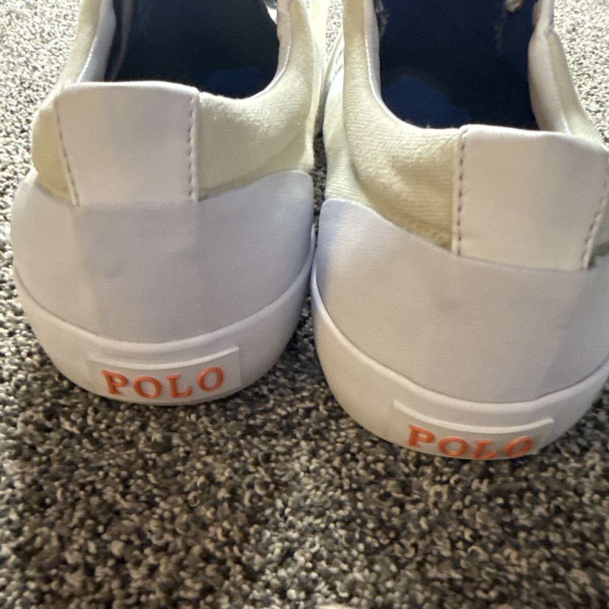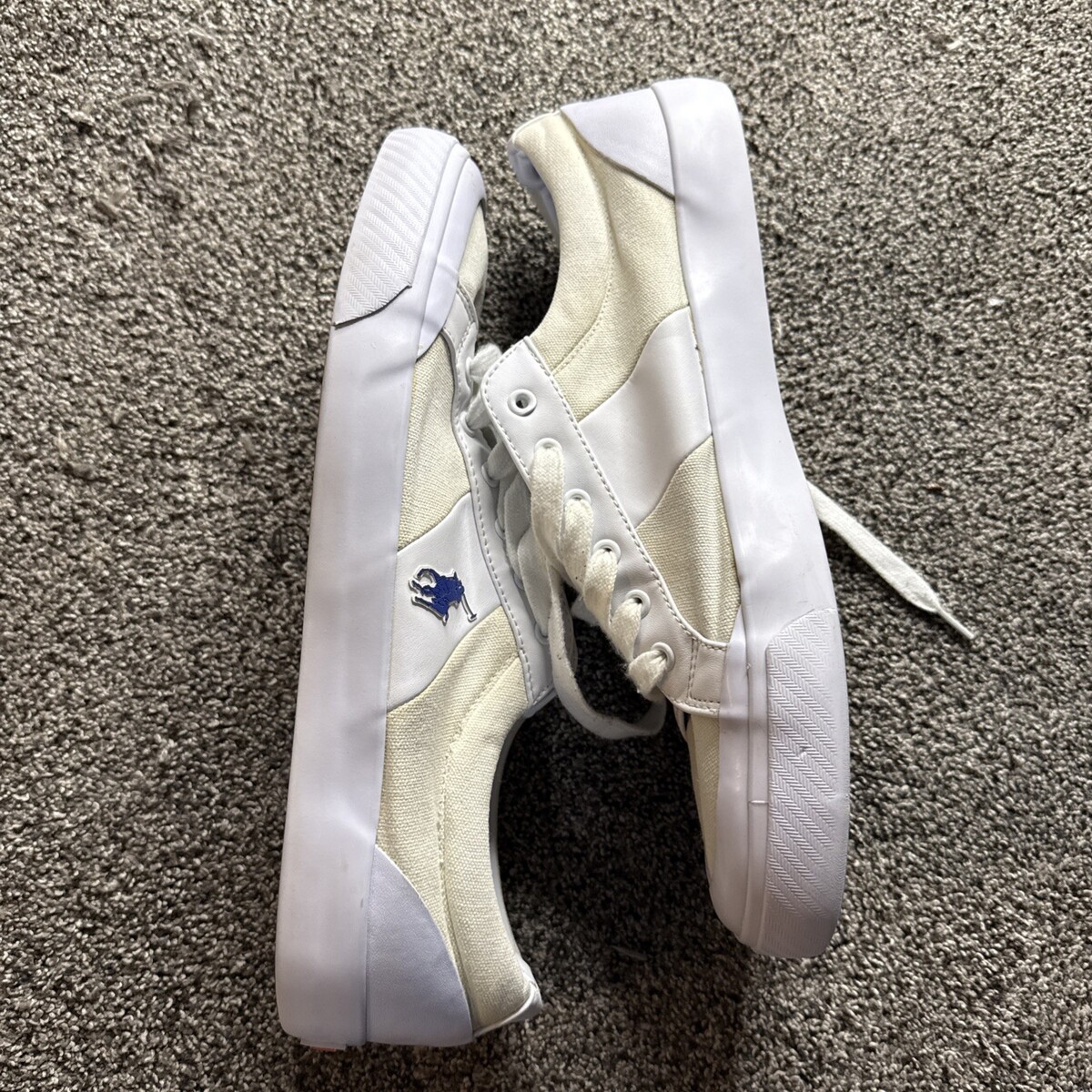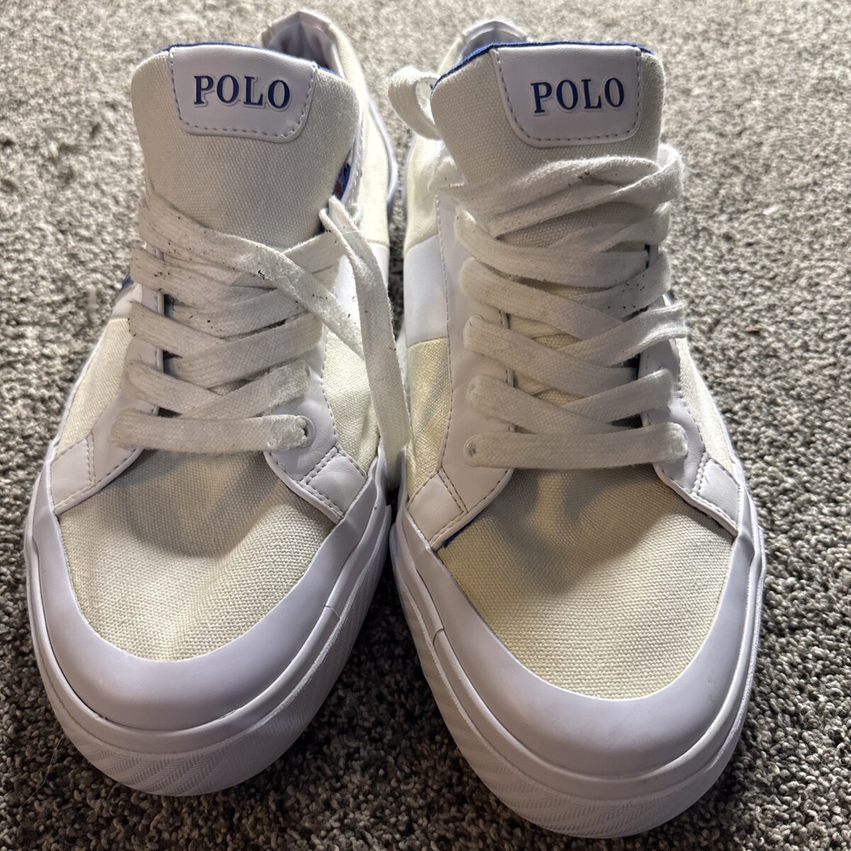 - Polo Ralph Lauren Keaton Rubber Sole Canvas Sneakers Size 14D Cream White Blue