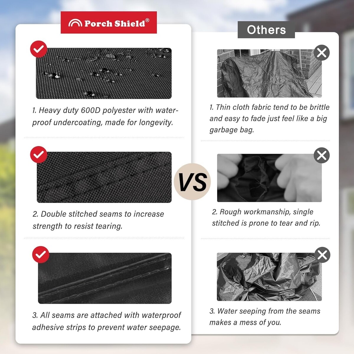 Fadeproof Waterproof Material - It is made of 600D tough polyester with waterproof undercoating. UV resistant treatment makes it stay vibrant for years. Enhanced with high-level double stitched and sealed seams. Ripstop enough to prevent the firepit cover against sun, rain, snow, wind, and dust.