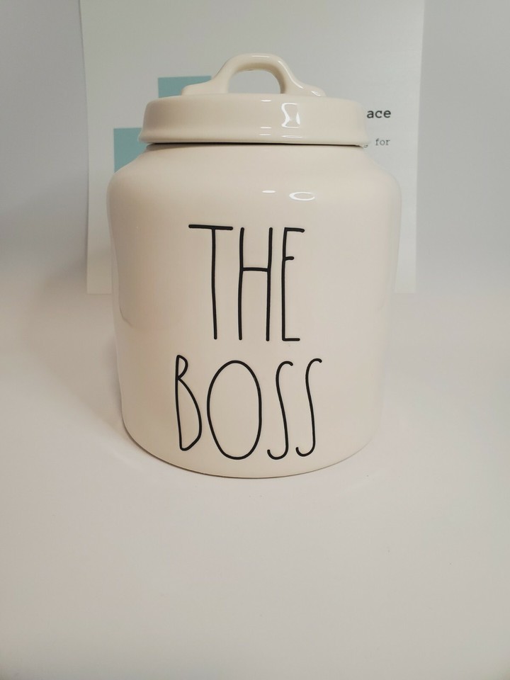 - Rae Dunn Extra Large The Boss Container .Dishwasher Safe 7.5"H. X 6" Diameter.