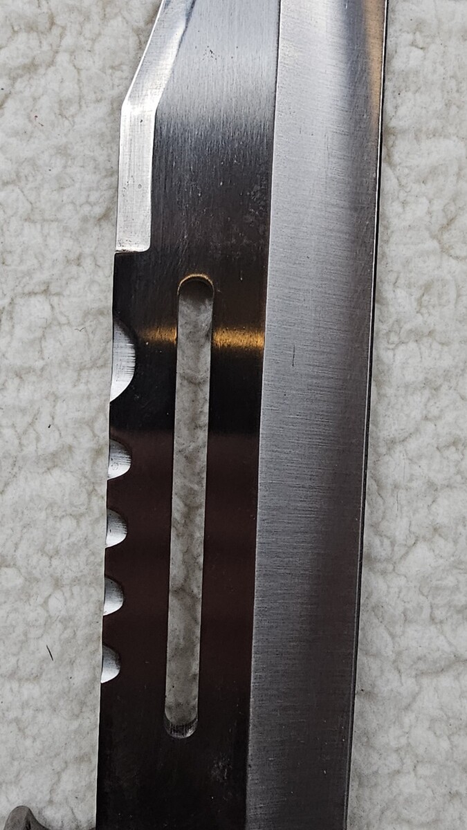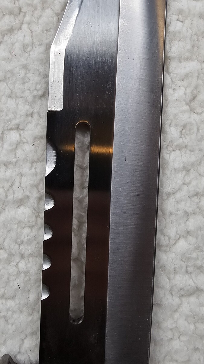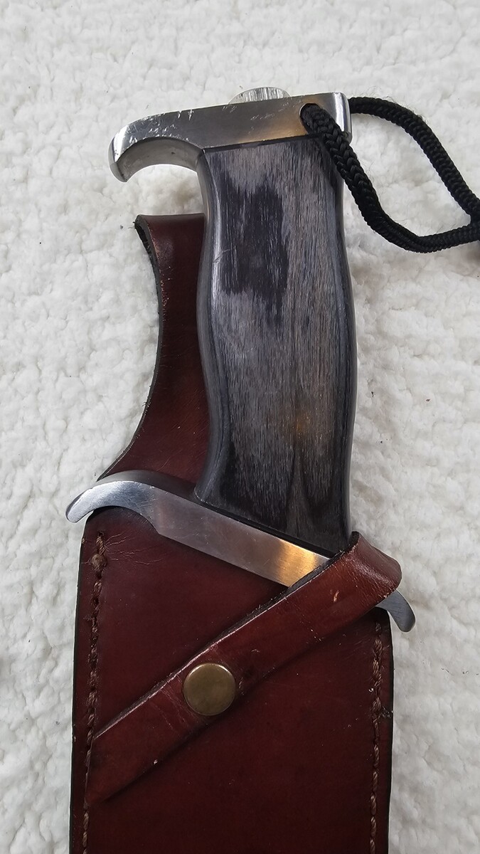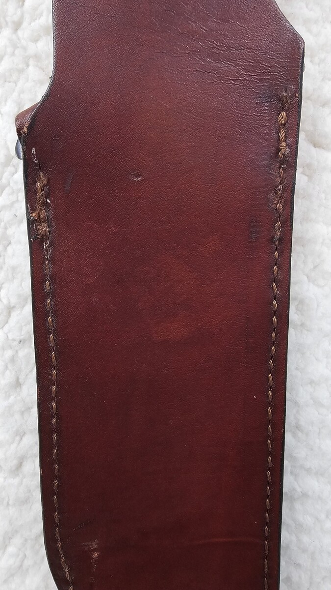 Light signs of wear on blade. No rust or major pitting. Sheath has small marks/wear/light damage. Cosmetic issue only. Ships quickly!