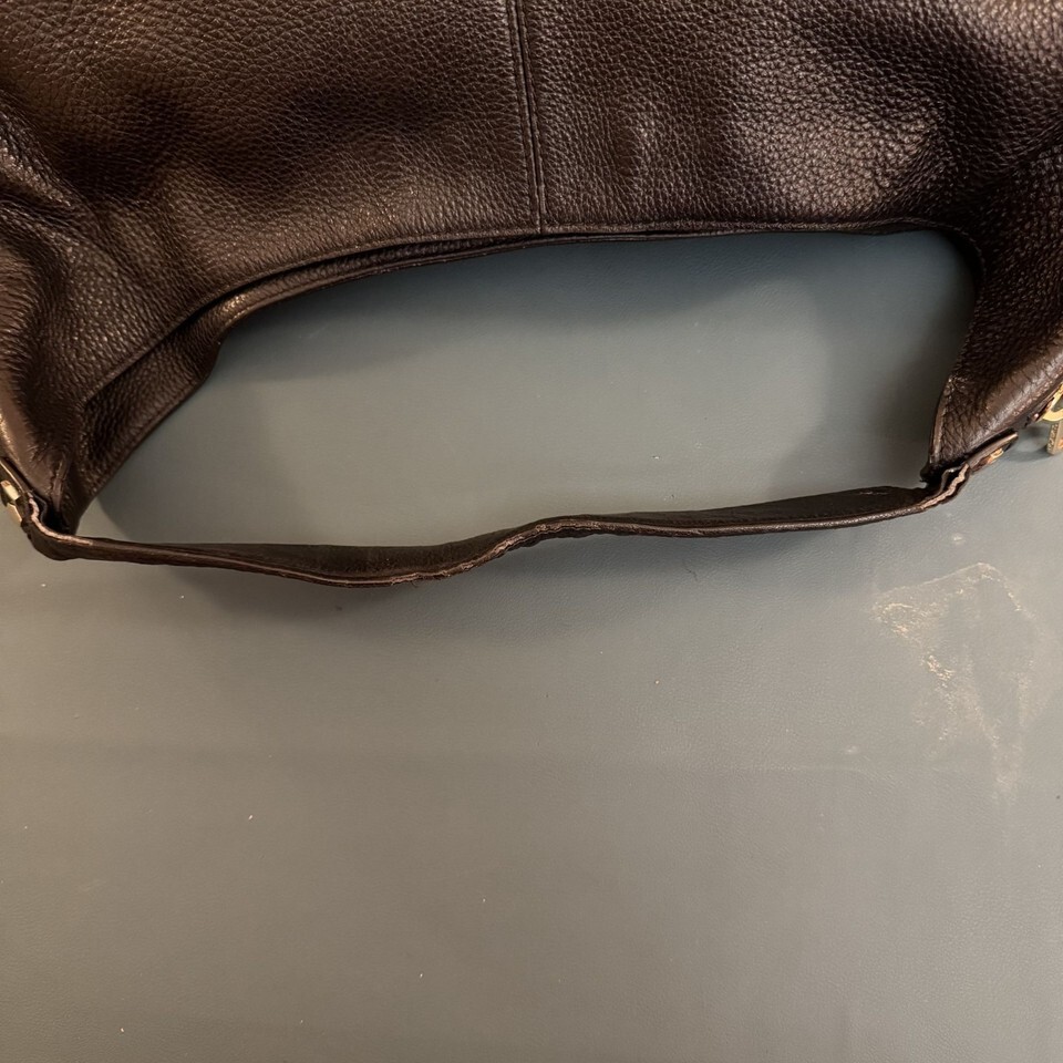 This is one of Rebecca Minkoff's earlier leather hobo designs, likely from the early 2010s, and features gold-tone hardware, side zip pockets, and a classic silhouette ? a style that's no longer in production. While not quite vintage yet, it offers the timeless slouchy shape and high-quality leather that defined her original handbag original handbag line.