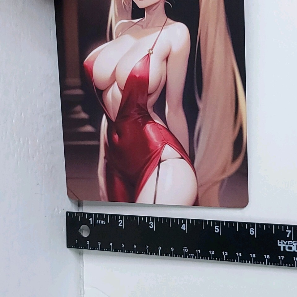 Red Dress Pigtail Double Sided Waifu Card Anime Girl Wall Art Oversized Board A5