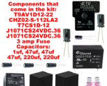 Repair Kit 62-104058-02 1194-200 Rheem IFC Integrate Furnace Control Board Repair Kit Components that come in the kit: T9AV1D12-22, CHZ02-S-112LA2, T7CS1D-12, J1071CS24VDC.36, J1071CS24VDC.36, 3 amp Fuse Capacitors: 1uf, 47uf, 47uf, 47uf, 220uf, 220uf Comes with 5 relays 6 capacitors and fuse components that repair 99% of all control boards. You must know how to solder with a soldering iron and you must know the correct orientation to install the parts. Capacitors and resistors only go one direction so don't install them backwards b/c they will not work. 1006363636363