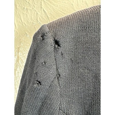 This lot is for repurposing or repairing. The shoes have cracked soles, some of the sweaters are cashmere and have holes, some items have staining or fading, and one is missing the buttons.