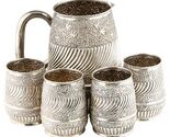 REPOUSSE SILVER WATER PITCHER & 4 CUPS