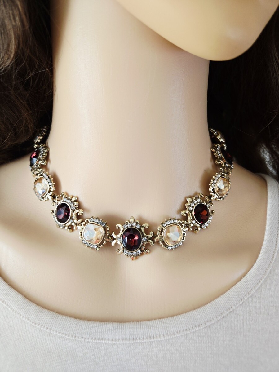 - Rhinestone Garnet & Aurora Borealis Choker Necklace