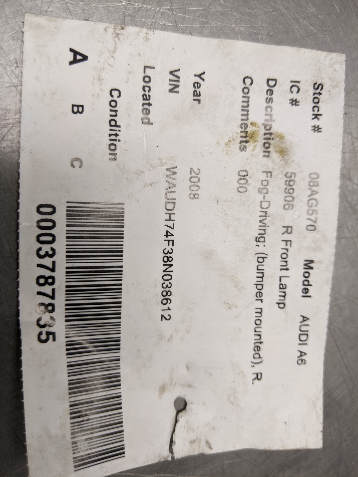 Primary image for Right Fog Lamp Assembly For 05-08 Audi A6 Quattro  3.2
