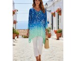 Ruby Rd Blue Print Tunic Blouse Animal Print Beaded Neckline Boho Artsy Size 2X