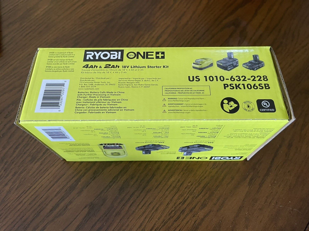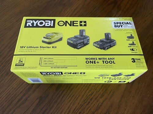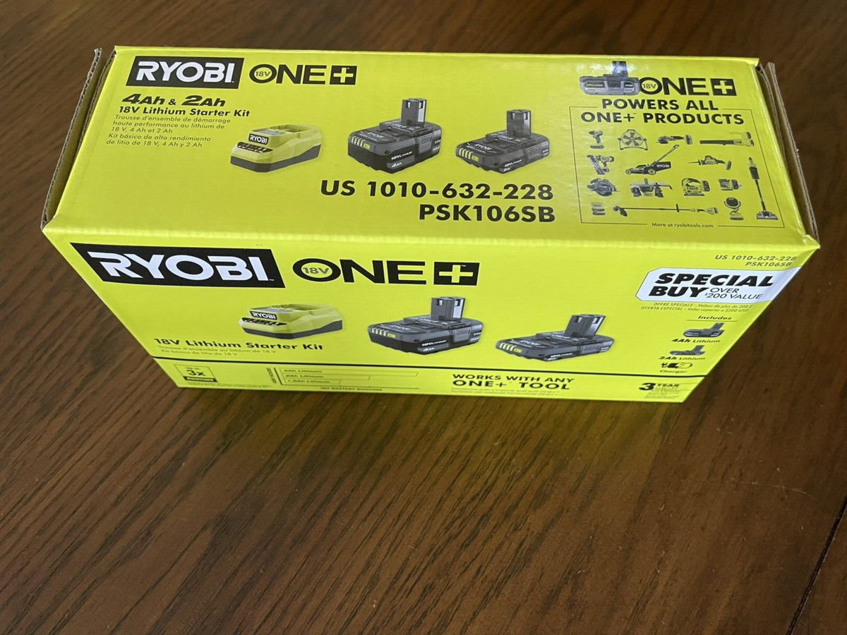 - Ryobi ONE+ 18V Lithium-Ion Starter Kit w/ 2.0 Ah & 4.0 Ah Battery & Charger NEW