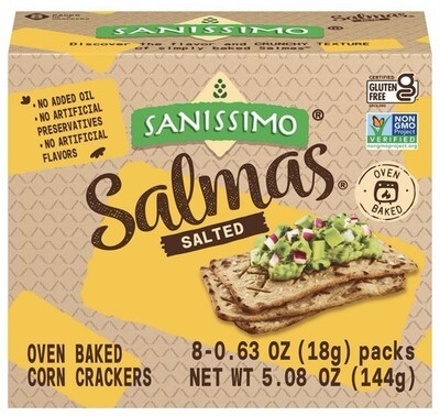 Sanissimo Salmas Salted Oven Baked Corn Crackers Gluten Free Non GMO Kosher 8 Pk