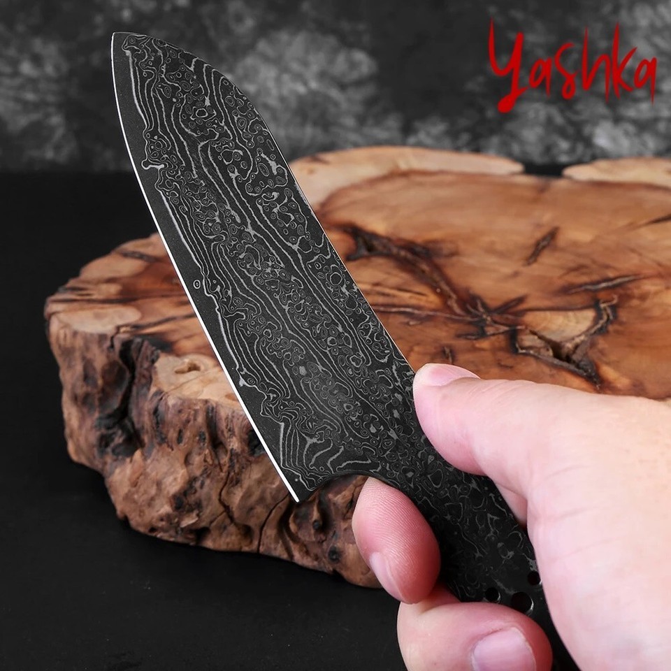 - Santoku Knife Blank DIY Kit Custom Kitchen Knife Making Black Blade Crafting New
