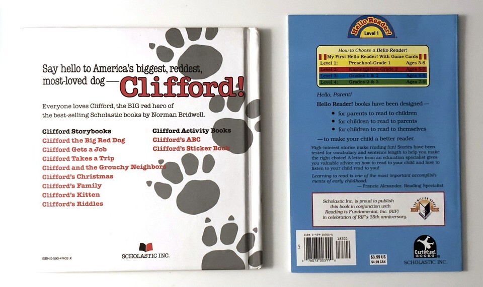 Scholastic's Books Clifford The Big Red Dog (hardcover) and two paper back Clifford the Small Red Puppy Clifford's Valentines . The books are in good, clean, pre-owned condition. I do have more books listed, and combined shipping is added to cart when you purchase two or more items from my shop.
