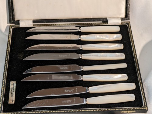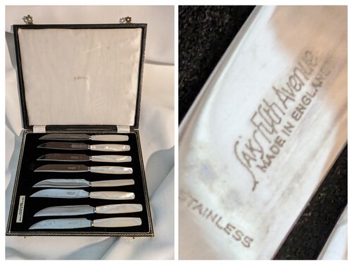 - Set Of Saks Fifth Avenue Fruit Knives Mother Of Pearl Handles Silverware Box