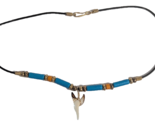 Shark Tooth Necklace Turquoise Color Orange Gold Beads Faux Leather 17-inch NEW