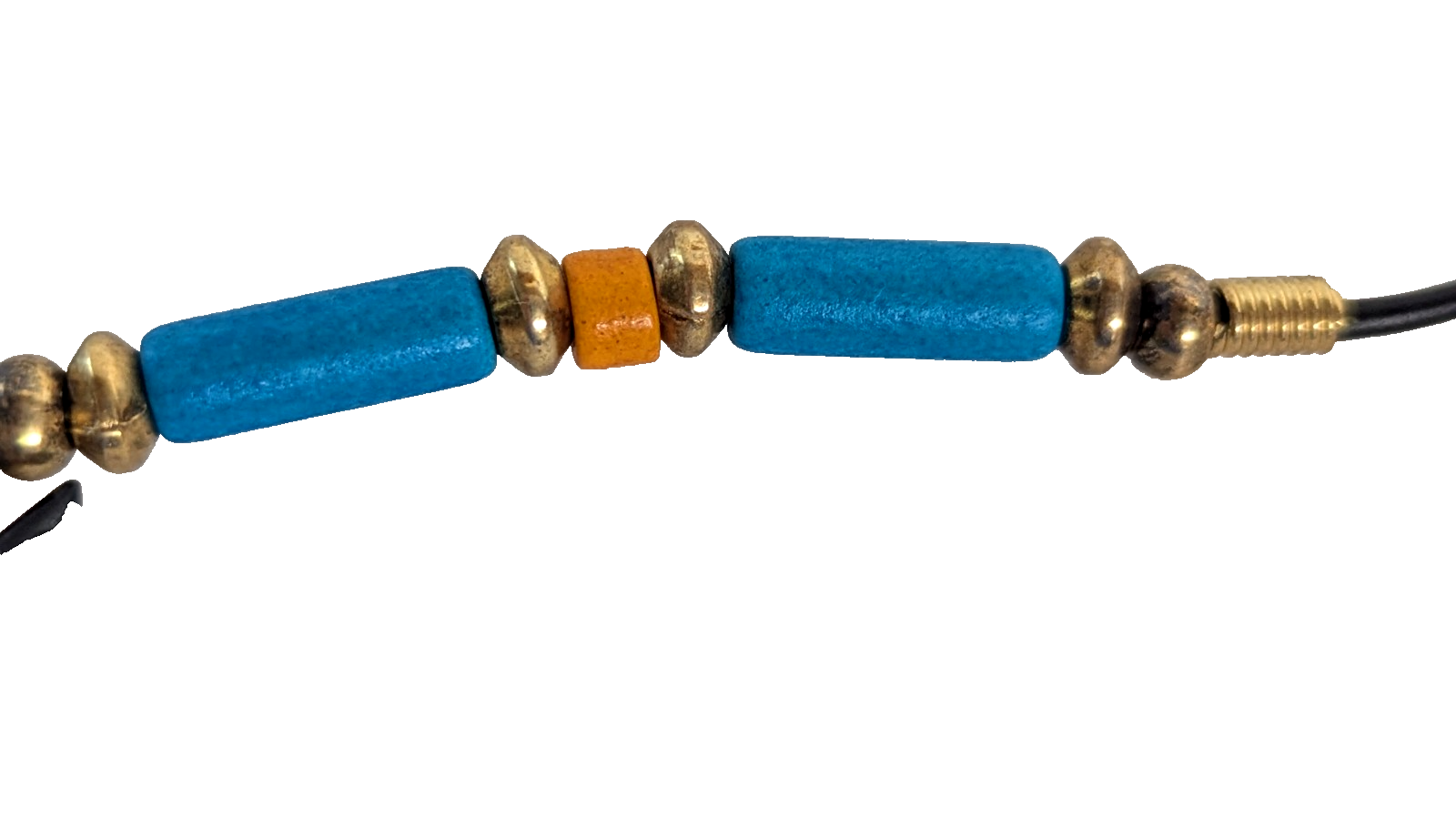 - Shark Tooth Necklace Turquoise Color Orange Gold Beads Faux Leather 17-inch NEW