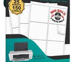? QUANTITY SIZE: 25 sheets, 4x3.33 in small label, 6 each for a total of 150 stickers.