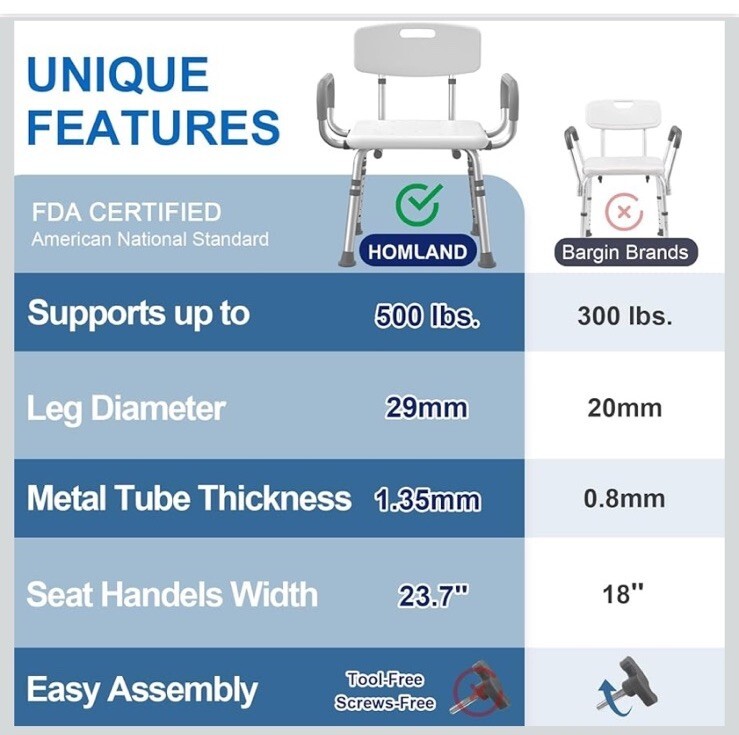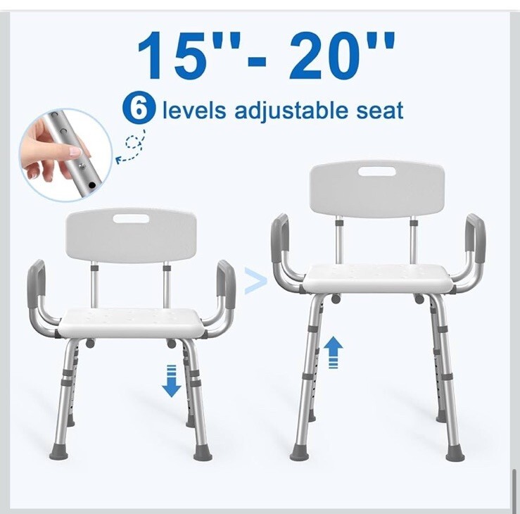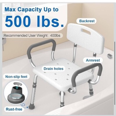 Shower Chair for Inside Shower with Arms and Back, 500 lbs Heavy Duty Shower ...