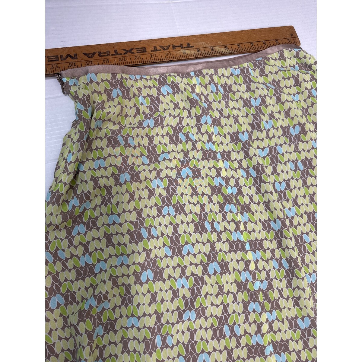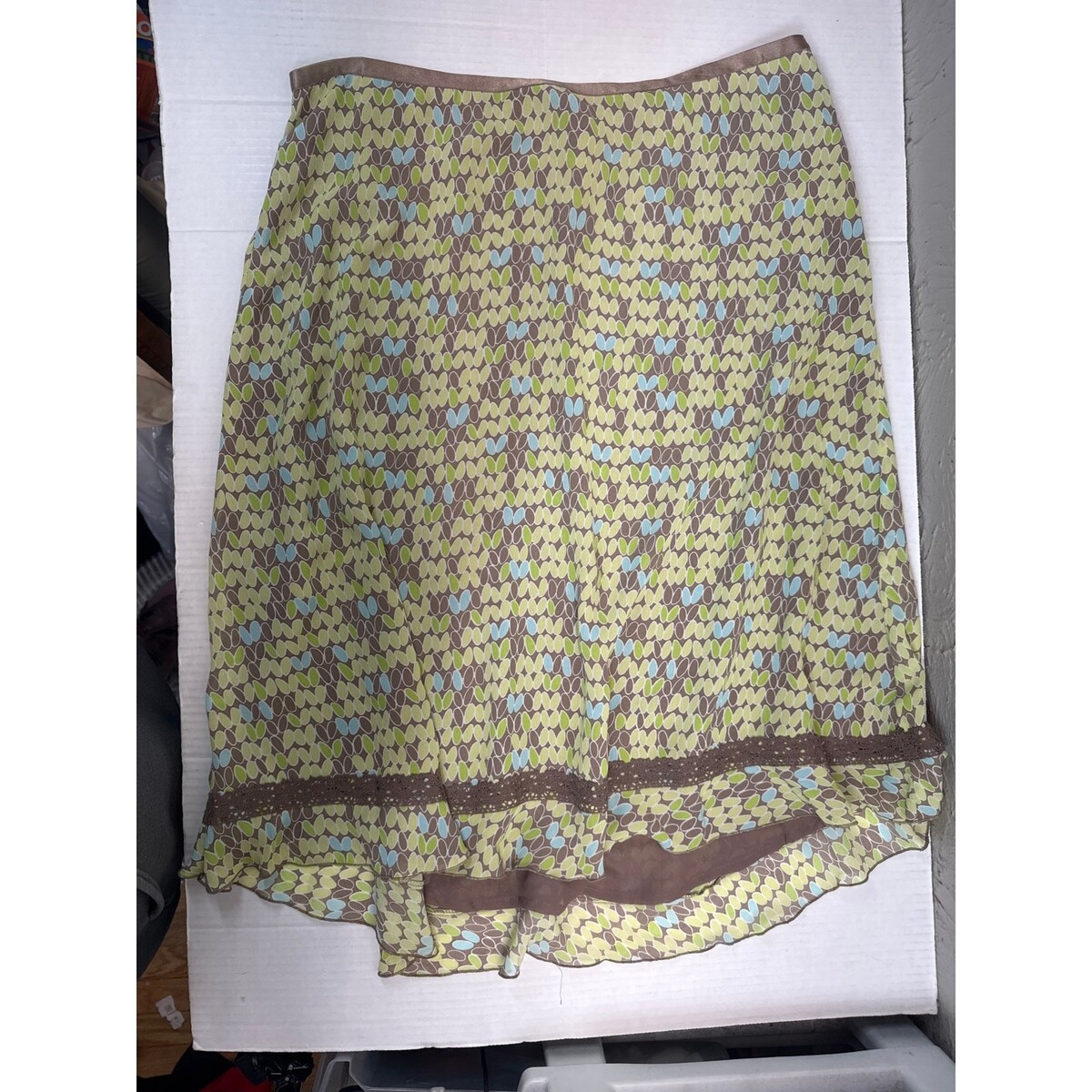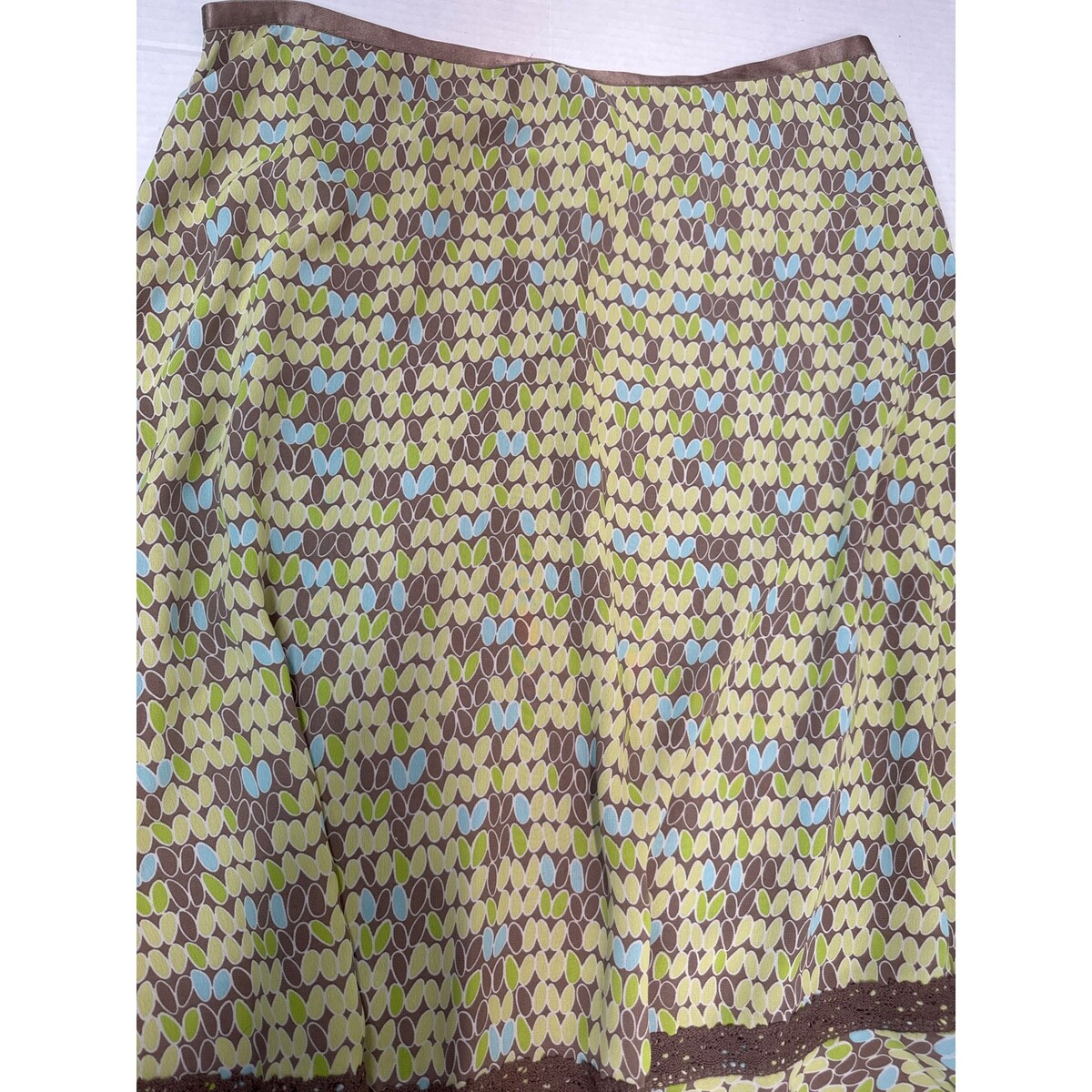 - Sigrid Olsen Womens Green Brown Print Lace Trim Boho Mini Skirt Lined Size 14