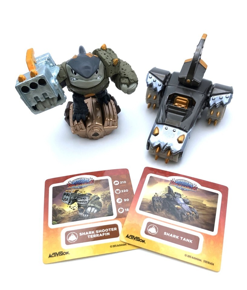 Skylanders Super Chargers Shark Shooter Terafin Super Charged Combo Pack. There is no packaging just what you see in the pictures. The figures have been used and there may be minor wear, overall the items are in good clean condition. I have more Skylanders and Video game items listed and combined shipping is added to your cart when you purchase multiple items at my shop. Check out my store for more toys at C C Collections | Stores