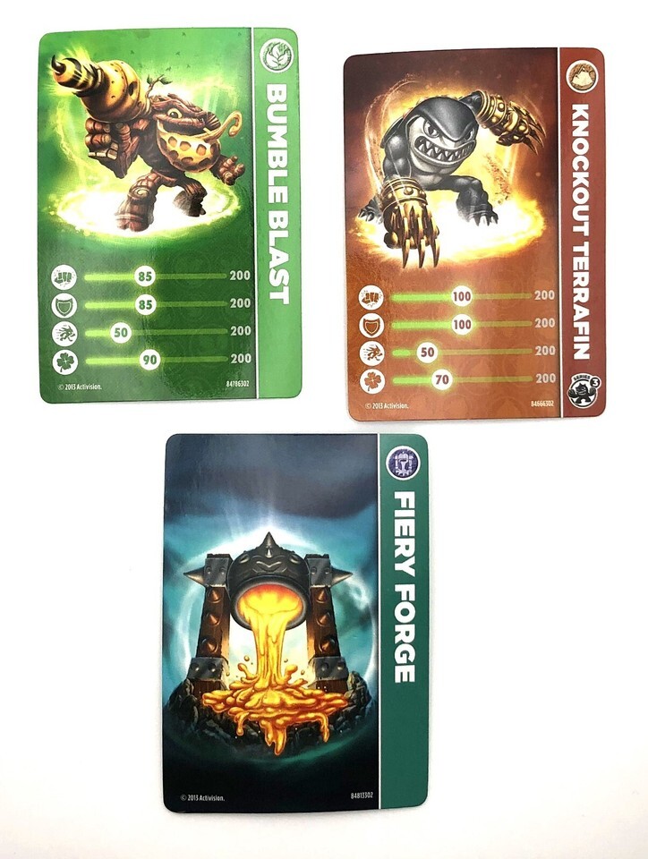 Skylanders Swap Force Fiery Forge Battle Pack Bumble Knockout Terrafin Blast by Activision. There is no packaging just what you see in the pictures. The figures have been used and there may be minor wear, overall the items are in good clean condition. I have more Skylanders and Video game items listed and combined shipping is added to your cart when you purchase multiple items at my shop. Check out my store for more toys at C C Collections | Stores