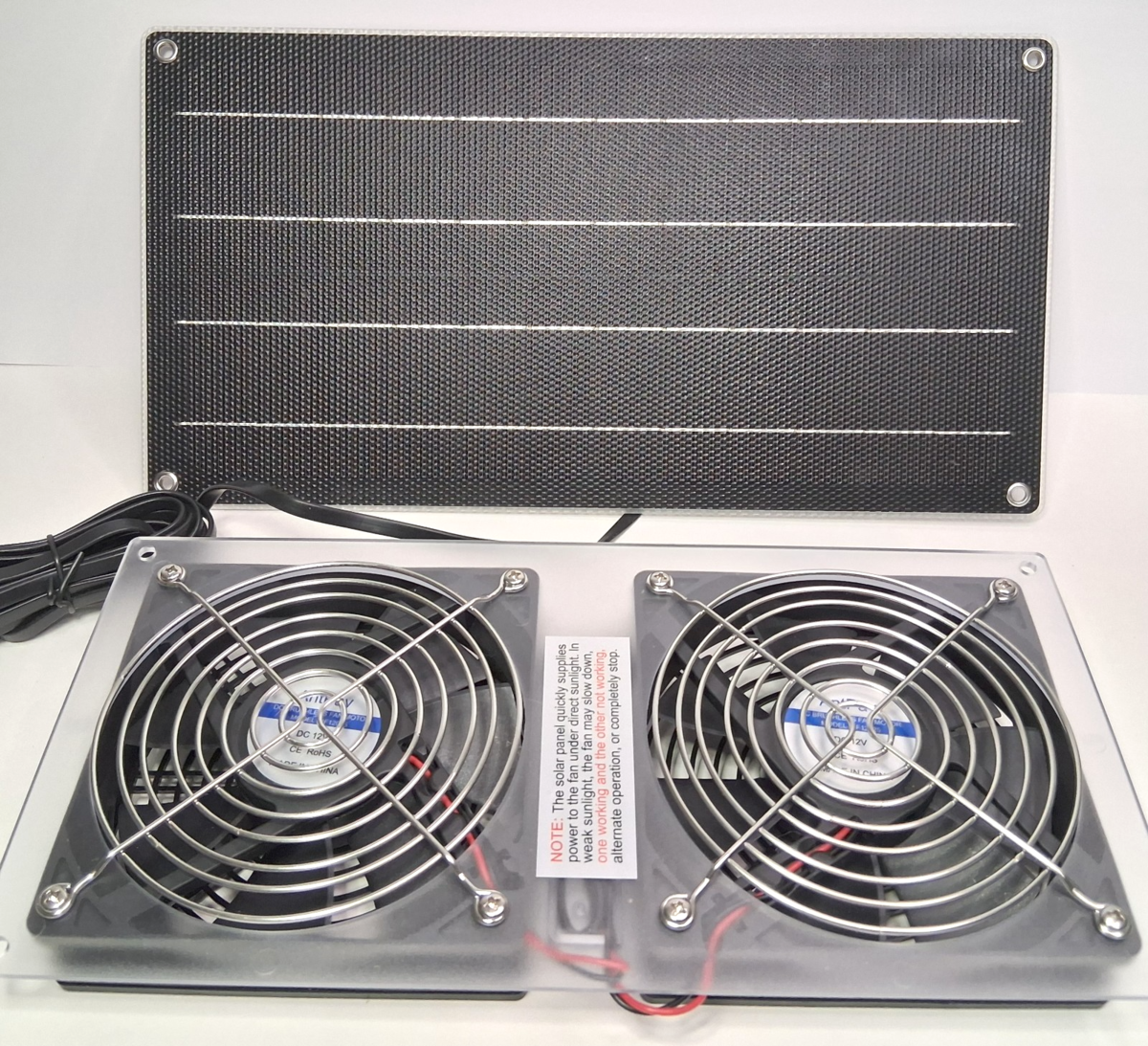 ONE 20W SOLAR PANEL INCLUDED - Powers both fan system