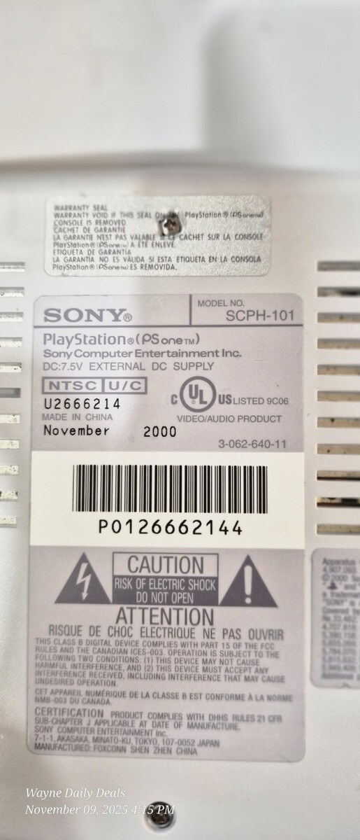 Fully working Sony PS One (Model SCPH-101) console. Tested and plays games smoothly.