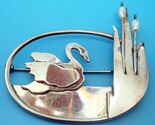 Arts and Crafts hand wrought sterling brooch with swan on water with cattails and freshwater pearls. It measures 53mm x 45mm or 2" x 1 5/8". It weighs 6.1 dwt., and the piece dates from the 1940's. Inventory#PZ3141.