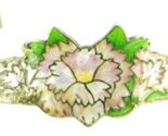 Pretty enamel sterling posy or corsage or scarf pin with pale pink and white carnation type flowers and green leaves. Marked sterling and crown T lion for Thomae Co c. 1920's. It measures 2 oe" long and 3/4" wide. The enamel is in good condition, except for the smaller flower on one side which has some wear. The pin is bent, we can try to straighten upon request. Lovely!